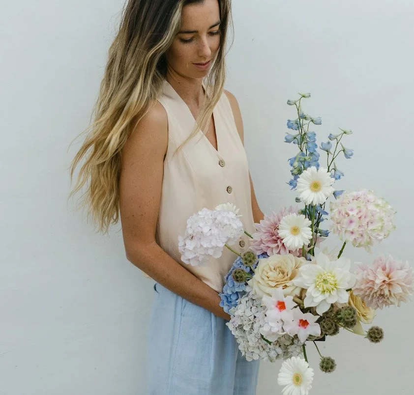 She has spent the last 18 years as one of Sydney’s most in-demand wedding and event florists before moving to Byron Bay in 2016. Living and working out of her Byron hinterland studio she spends most of her time between weddings, events, and growing her own flowers.